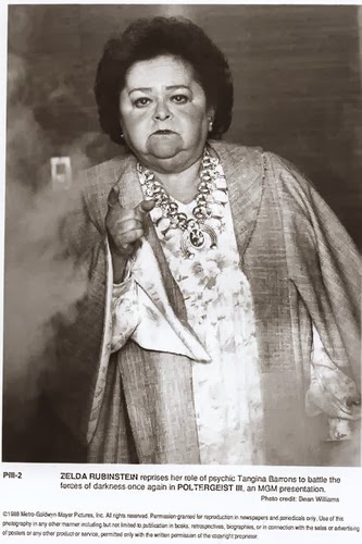 | Nesta foto da atriz Zelda Rubenstein apareceu uma fumaça. A atriz confirmou que esta foto foi tirada no momento em que sua mãe falecia. |