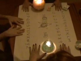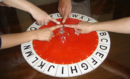 Uma amiga da minha irmã pediu para o espírito se ela poderia fazer uma pergunta a ele só de mente, pois ela disse que não queria que as pessoas da mesa soubessem o que ela iria perguntar a ele, e assim foi feito. Ele a concedeu e ela fez a pergunta. Ficou-se um tempo em silêncio, aí ela disse: "Pronto. Já perguntei." Ele respondeu: "Pergunte novamente. Não entendi." Então ela repetiu a pergunta e nada, o copo parou de se mover e ficou parado. Até que ela, já irritada, perguntou: "Quem está aí?" Foi então que o copo foi para as letras e todas as meninas soletraram as letras, e escreveu o seguinte: SATANÁS.
