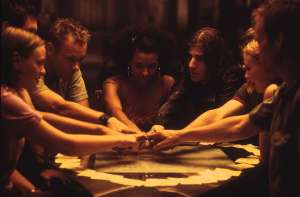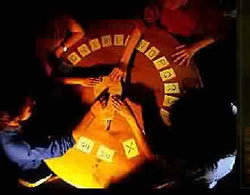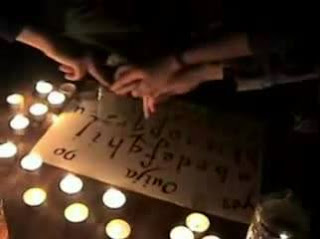 Daí, essa amiga da minha irmã simplesmente saiu e foi embora. Detalhe: A brincadeira só funcionava se tivesse um médium na mesa, fora isso o copo nem poderia sair do lugar onde estava posto, e essa amiga da minha irmã era a médium da mesa. Foi então que começou a discussão. Como poderia a brincadeira funcionar se ela tinha desistido de participar? Foi então que elas, já de tanto pensar e viciadas nesse jogo horrível, olharam para mim e tiveram a infeliz idéia de testar se eu era a médium da mesa. Nunca me esquecerei, lembro-me como se fosse hoje, ao por o dedo no copo minhas irmãs juntas com as amigas delas perguntaram: "Espírito de luz, você está aí?" O copo se moveu vagarosamente para a palavra Sim que estava escrito na mesa. Elas novamente perguntaram:"Espírito de Luz, quem é a médium da mesa?" Aí ele vagarosamente foi para as letras que estavam escritas na mesa e "escreveu" o meu nome. No momento o medo foi tão grande que minhas mãos ficaram dormentes e comecei a sentir febre. Daí em diante viciei junto com minhas irmãs, e em vez de fazer o jogo uma ou duas vezes na semana, passamos a fazer todo dia no final da tarde...