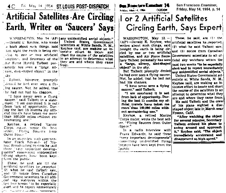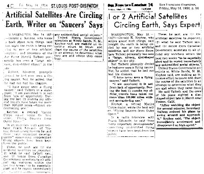 Artigos dos jornais St. Louis Dispatch e The San Francisco Examiner sobre o satélite desconhecido