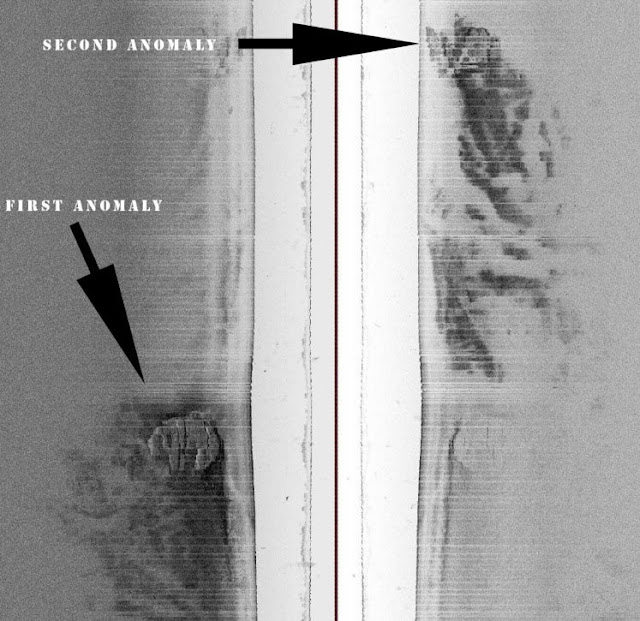 "O objeto foi encontrado ao lado da anomalia maior de 60 metros de largura, à profundidade de 79 metros. Ele é considerado como somente um dos muitos achados curiosos que a equipe encontrou no local, a maioria dos quais ainda está sob um embargo contratual pela empresa de TV que financiou a viagem, e serão revelados mais tarde este ano, quando um documentário de 60 minutos será levado ao ar.